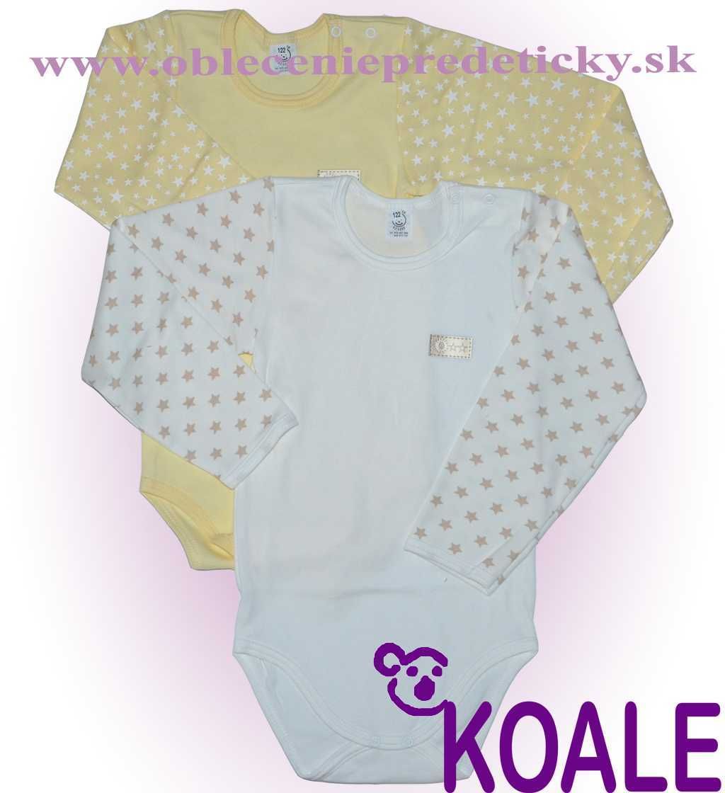 Dojčenské body dlhý rukáv Hviezdy 104,116,122, farby: béžová, žltobéžová, žltá, smotanová, zelenosivá.