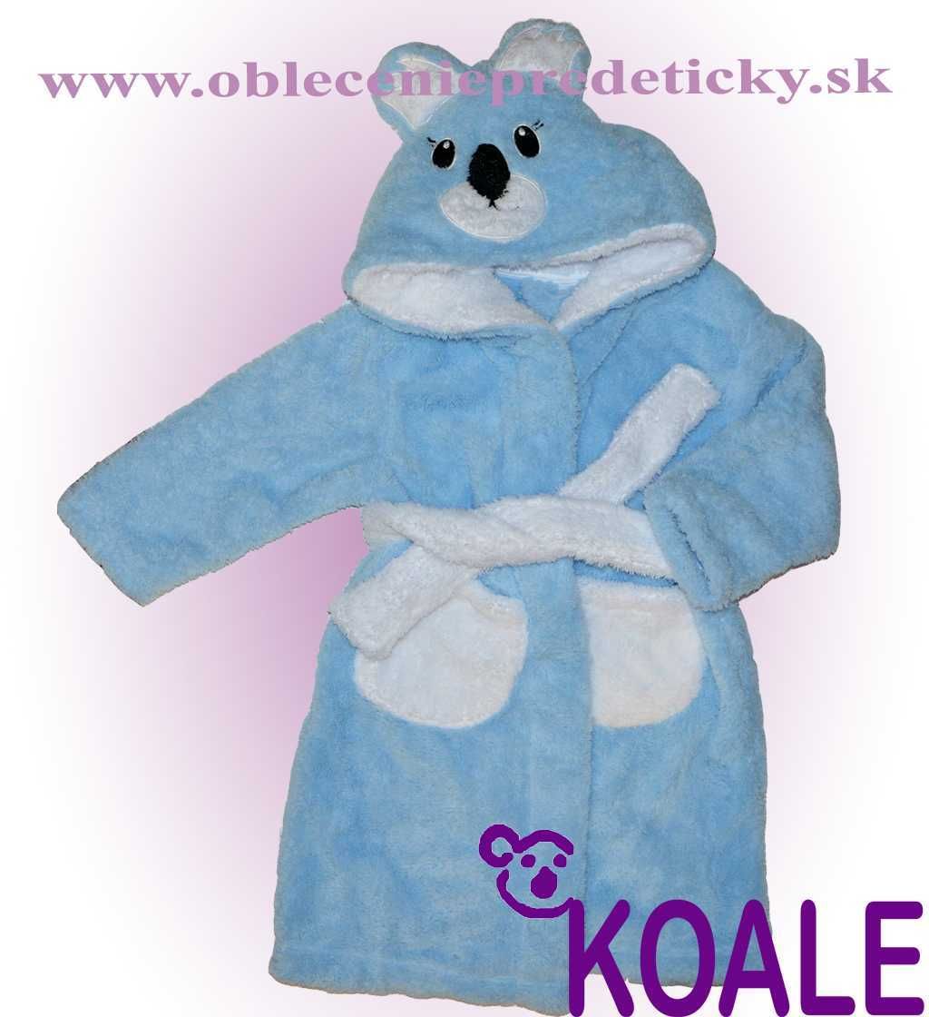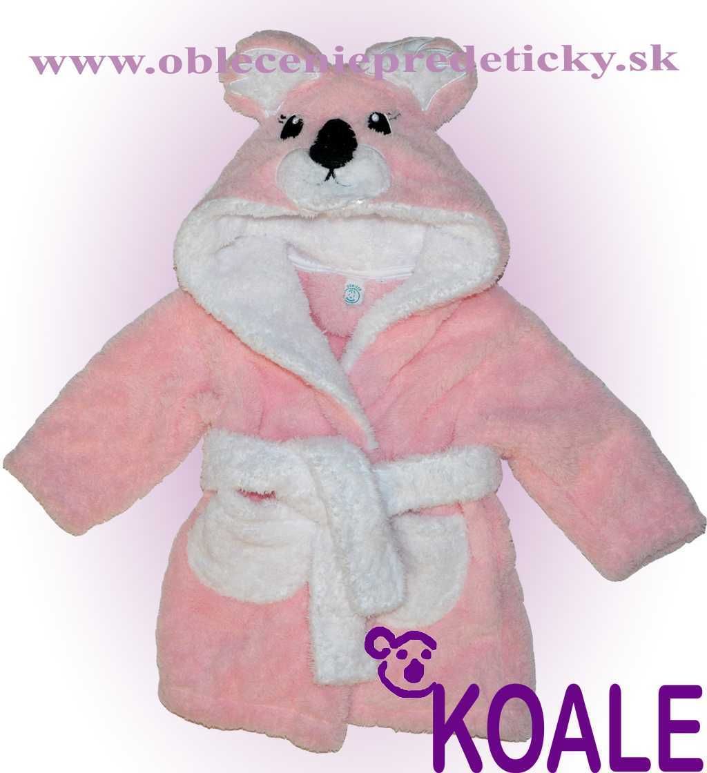 Značka: UŚMIECH DZIECKA (PL), 100 % polyester. Teplý, príjemne jemnučký župan pre bábätko v tvare milého zvieratka - Koala. Má kapsičky a praktický opasok, ktorý sa nestratí. Bábätko bude po kúpaní pekne v teplúčku. Župany sú dostatočne veľké, zakuklia bábätko od hlavy až po päty a môžu sa použivať i vo vyššom veku bábätka. Županík využiteľný celoročne, vo výbornej kvalite za primeranú cenu. Za tovar môžte zaplatiť prevodom alebo dobierkou.